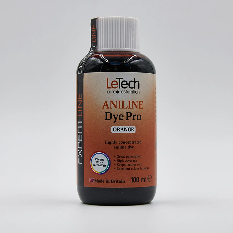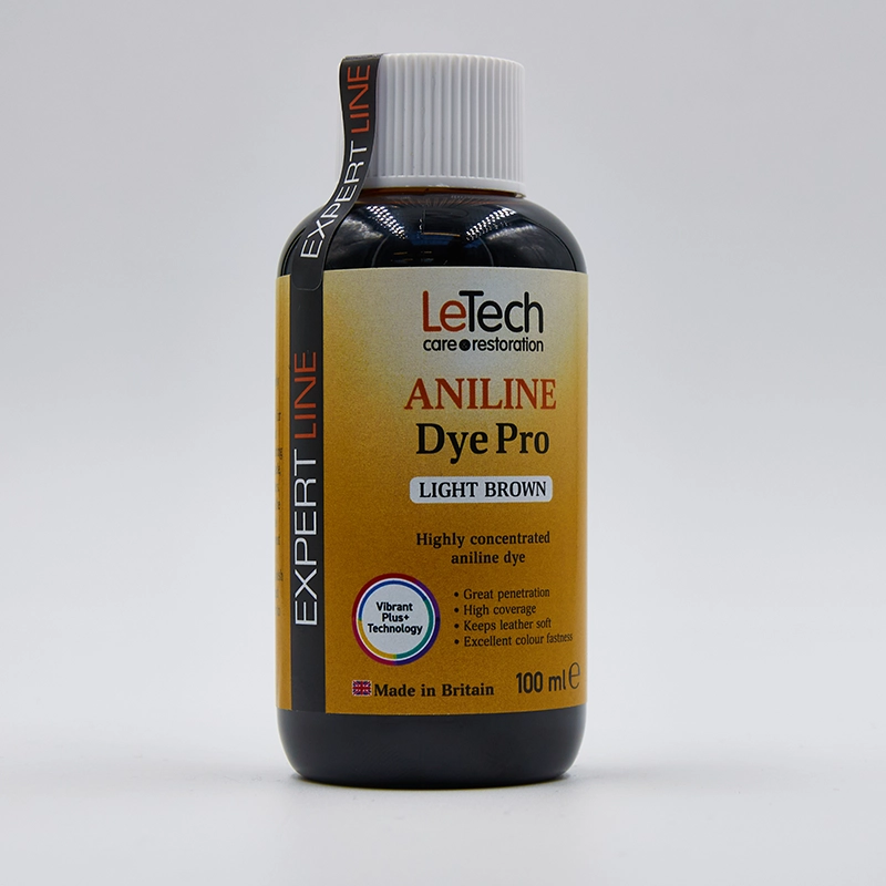 Aniline Dye Pro EXPERT LINE з технологією Vibrant Plus+ від LeTech. Спеціалізований барвник з високою концентрацією, на основі спирту, створений за допомогою передових технологій у виробництві шкіри. Ідеально підходить для фарбування шкіряних виробів, а також для відновлення кольору.
