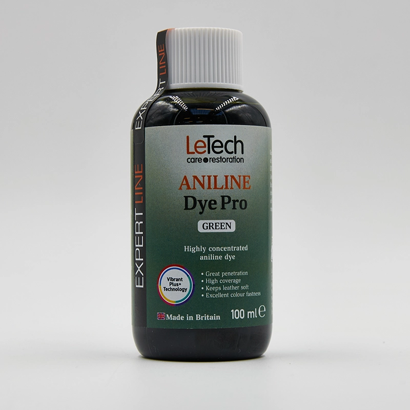 Aniline Dye Pro EXPERT LINE з технологією Vibrant Plus+ від LeTech. Спеціалізований барвник з високою концентрацією, на основі спирту, створений за допомогою передових технологій у виробництві шкіри. Ідеально підходить для фарбування шкіряних виробів, а також для відновлення кольору.